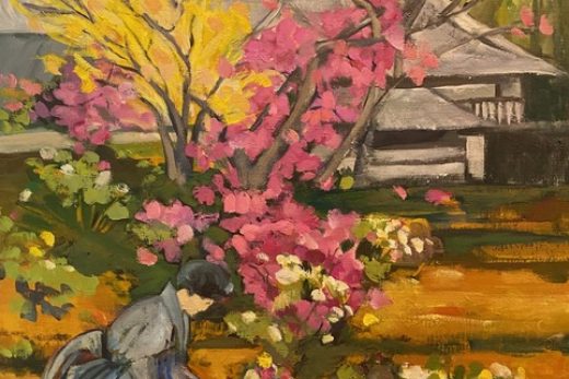 Japon: Madame Kobayashi dans son jardin, huile sur toile, 60×60